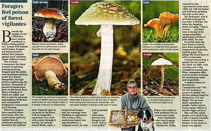 Also, the suggestion that commercial mushroom picking is ‘rife’ is laughable. Tesco is currently buying in top quality chanterelles, horn of plenty and hedgehog fungi from Russia for £6 per kg. These retail in the aisles at £20. This is the competition the alleged “New Forest gangs” are up against. It would take many hours to gather, say, 100kgs of such mushrooms. These would have to be graded (with up to 50% jettisoned as poor quality); paperwork filled out; then they would have to be transported in a 200-mile round trip to a New Covent Garden wholesaler – who would only buy from a reputable seller with proper insurance. The figures just don’t make any sense, but even if they did, we live in an age of mobile phones with cameras, microphones and even video. Where is the evidence of these gangs?