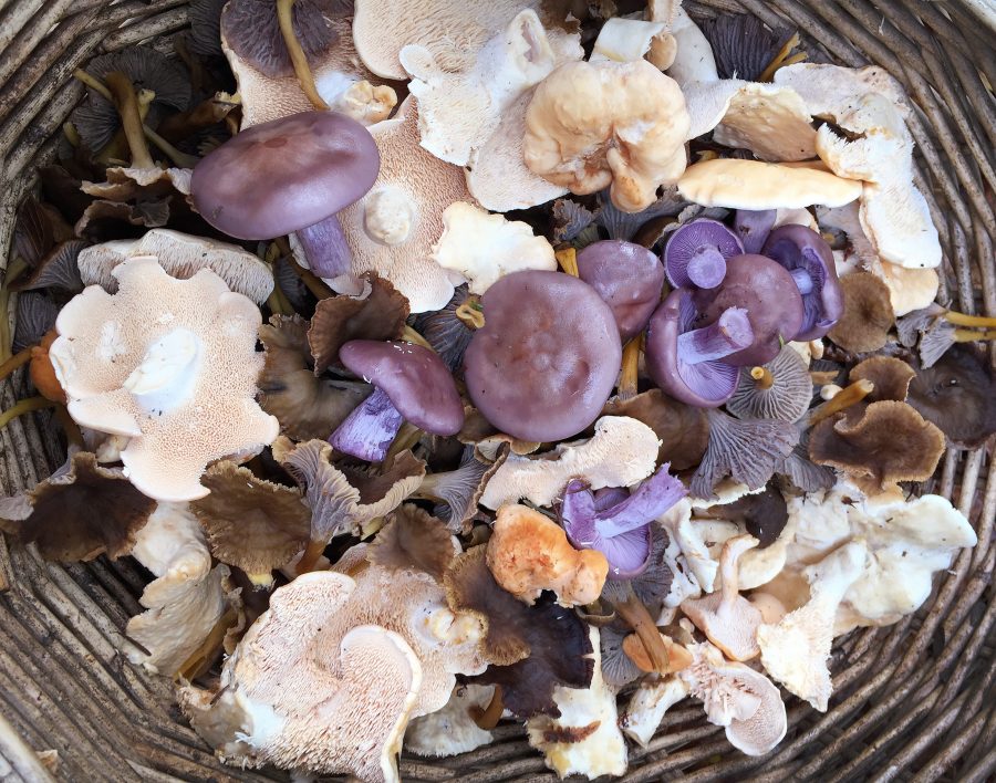 John has very kindly invited me to contribute a guest blog. I am a fellow foraging guide who is based in Mid-Wales. Almost all of my forays are in the vast conifer plantations scattered along the Cambrian Mountains. I am lucky in that no one seems to want to restrict mushroom picking here. This is entirely sensible. The local forestry managers appreciate that harvesting the fruiting bodies we know as mushrooms, has no impact on future crops appearing. Also, there is effectively no competition for something which most people regard as ‘toadstools’. And finally, as these plantations will shortly be cut down, clear-felled to produce timber, this will totally destroy the buried mycelia, the organisms which produce the fruiting bodies.